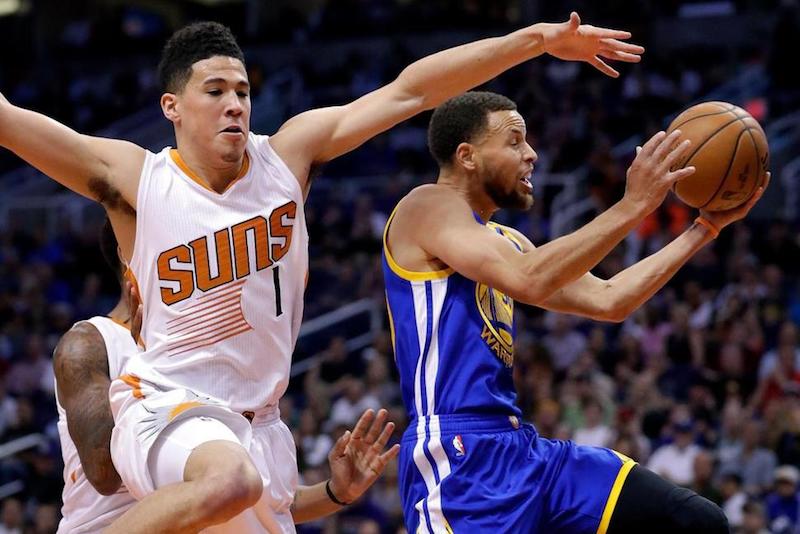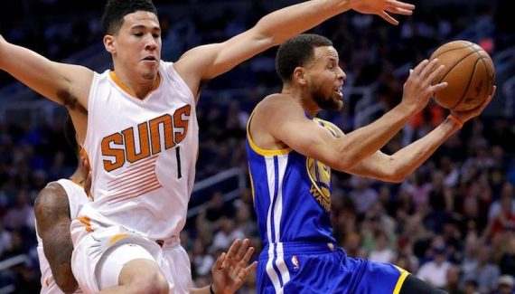Les Splash Brothers aiment l’alternance. 42 points pour Stephen Curry dimanche, 41 pour Klay Thompson mardi, et de nouveau 42 points pour Curry cette nuit ! Sans Draymond Green et Andre Iguodala, et face à des Suns accrocheurs, le double MVP a pris les choses en main pour permettre aux Warriors de devenir la première équipe de l’histoire à remporter 65 victoires trois saisons de suite (120-111). Avec la défaite surprise des Spurs face aux Lakers, Golden State est désormais assuré de terminer à la première place de la conférence Ouest, synonyme d’avantage du terrain pendant tous les playoffs. Comme en 2015 et 2016.
