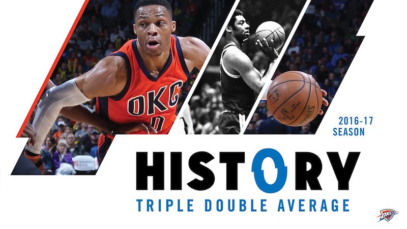 Il fallait six passes décisives à Russell Westbrook pour valider son triple double de moyenne sur la saison, et c’est chose faite avec ses huit caviars de la nuit face aux Suns. Cinquante-cinq ans après Oscar Robertson, le meneur du Thunder devient le deuxième joueur de l’histoire à accomplir un tel exploit. Depuis le 29 novembre 2016, le n°0 a tenu la cadence et il ne lui manque plus maintenant qu’un 42e triple double pour devenir le roi incontesté de cette catégorie en effaçant “Big O” des tablettes de la ligue sur une saison.