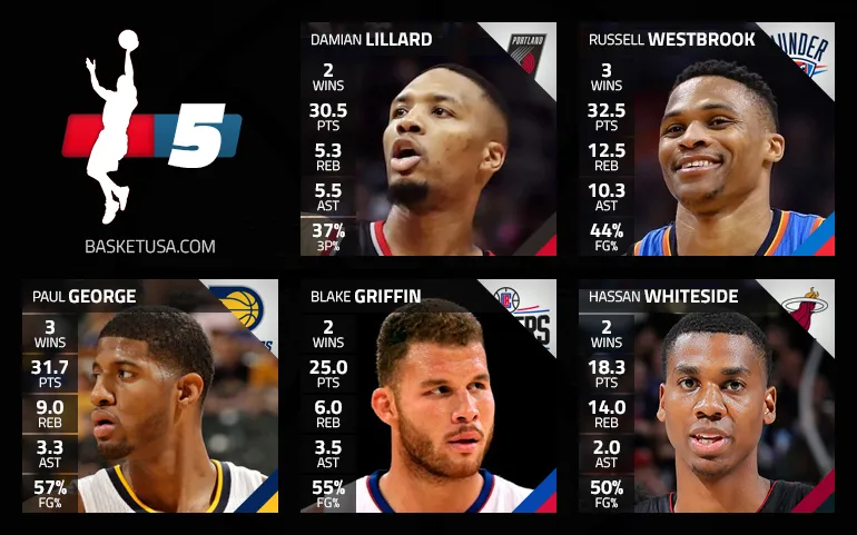 À l’aile, Paul George permet aux Pacers de retrouver l’équilibre, l’ailier ayant repris confiance en son équipe. L’effet Lance Stephenson ? En tout cas, Indiana va mieux au meilleur moment alors que Blake Griffin et les Clippers ont repris l’avantage du terrain sur le Jazz, l’ailier fort montant en pression au meilleur moment pour son équipe. Quant à Hassan Whiteside, il fait également tout ce qu’il peut pour permettre à Miami de goûter aux playoffs à l’Est.