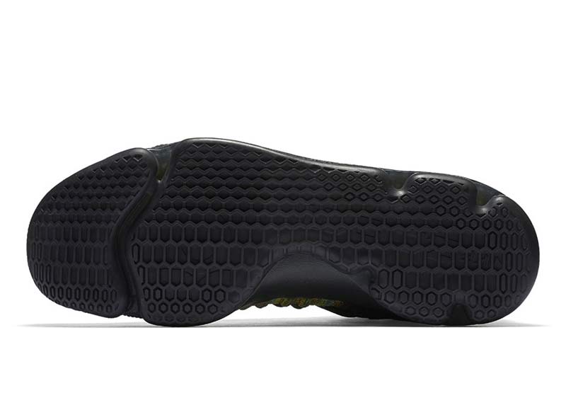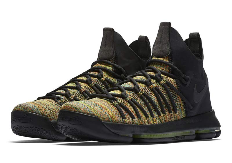 Très souvent présent sur les modèles running de la marque à la virgule, le coloris Flyknit multicolore commence à se faire une large place sur les parquets.