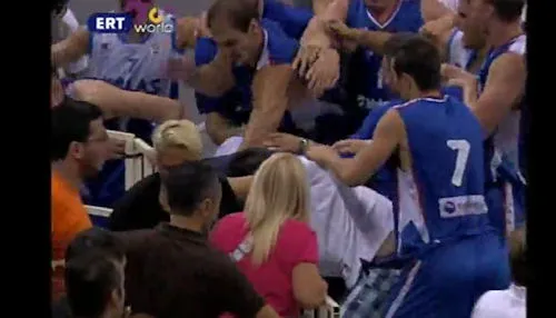 /https%3A%2F%2Fwww.basketusa.com%2Fapp%2Fuploads%2F2010%2F08%2Fbaston-grece-serbie.jpg) Après voir mené son enquête sur la bagarre générale entre la Grèce et la Serbie, la FIBA a décidé de frapper fort. Ainsi, elle a décidé de suspendre quatre joueurs.
