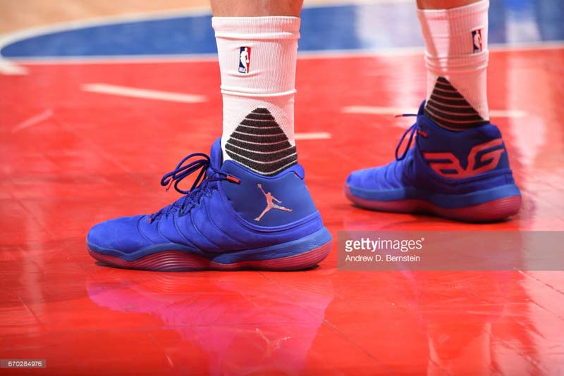 Lors de ses deux derniers matchs, Griffin a porté la Super.Fly 6. Une chaussure visiblement très épurée, mais qui présente tout de même une nouveauté intéressante : sur la tige, le mesh semble avoir été remplacé par des matériaux plus nobles.