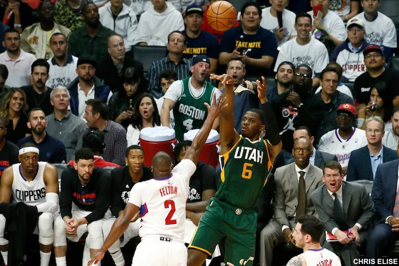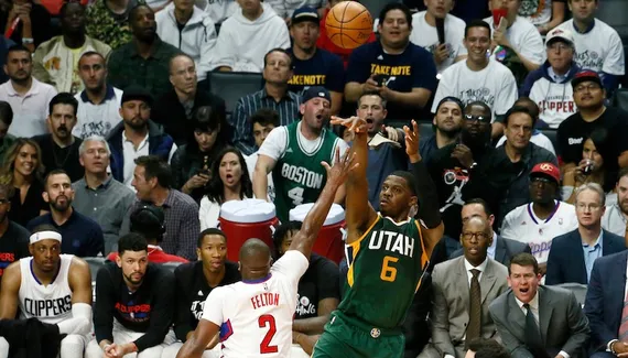 Dès la première action de ce match, Rudy Gobert contre DeAndre Jordan qui part au spin move devant lui. Sans vraiment le faire exprès, le pivot français vient de donner le ton et le thème de ce match : il sera défensif ! Ce premier avertissement n’empêche pas le pivot des Clippers d'aller conclure au alley-oop l'action suivante, sur un caviar de Paul. Mais au 7-0 de départ des Clippers, le Jazz répond par un 8-0 avec l'adresse de Gordon Hayward. L'ailier démarre très fort avec trois tirs primés tôt dans ce match. L'un de ses tirs est rendu par un certain Paul Pierce tandis qu'Austin Rivers fait son retour, pas hyper applaudi par le Staples Center (10-14). On note globalement que le Jazz fait mieux tourner le ballon, obtient de bien meilleurs tirs que les Clippers, mais l'adresse n'est pas toujours au rendez-vous. Une impression qui va se confirmer tout au long du match. Utah rate d'ailleurs… huit tirs de suite pour terminer ce premier quart-temps. Pierce, lui, ne se fait pas prier pour convertir un deuxième tir de loin (21-19).