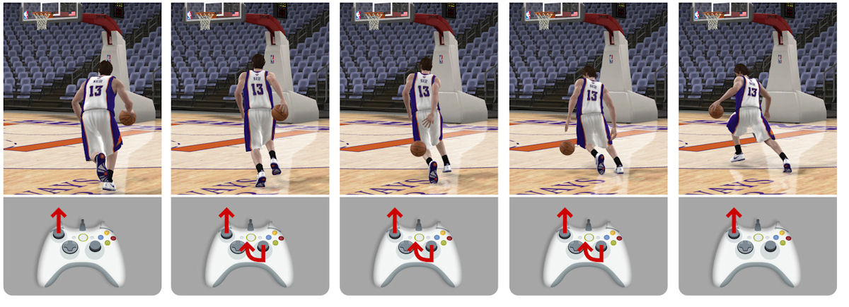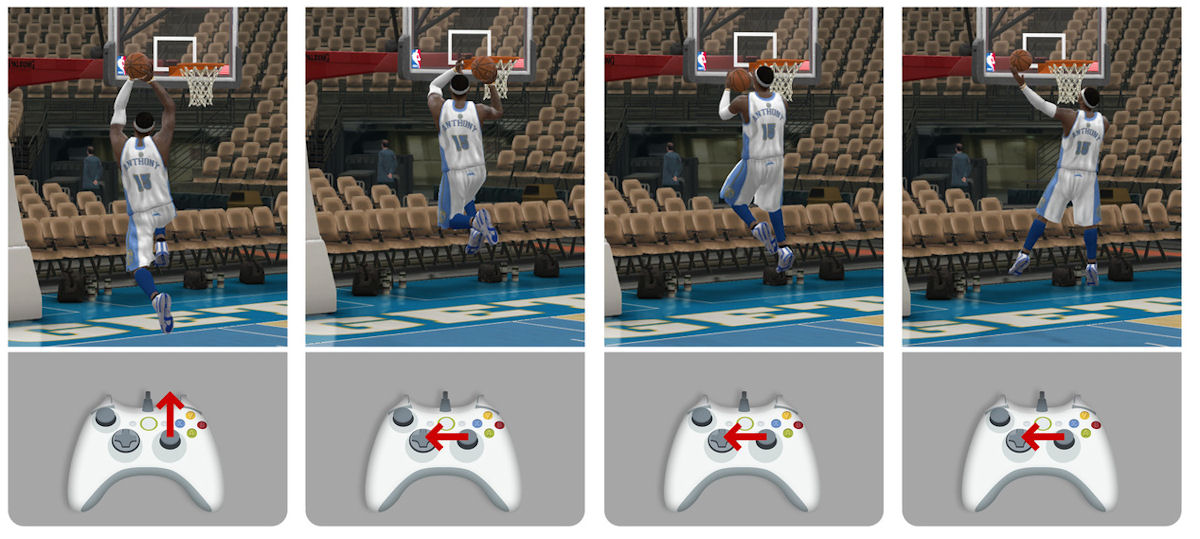 Dans sa volonté d’offrir une expérience où le joueur est alors «acteur et non spectateur», EA a mis en place un gameplay où le joueur décide de ce qui ce passe réellement dans le jeu. Cela passe évidemment par le shoot qui devient alors très technique reposant entièrement sur les «skills» du joueur. Ainsi si l’on incline le stick trop à droite ou trop à gauche, le tir sera manqué dans la direction pressée. De même il faut jauger la distance du tir et relâcher le stick au bon moment afin de marquer. Le même système est employé pour les lancers franc où vous devrez “viser” le panier. Si cela permet une expérience moins aléatoire, cela complique aussi la prise en main et il vous faudra quelques séances d’entrainement afin de commencer à maitriser les variables d’un tir réussi. Les débutants auront bien du mal contre un joueur expérimenté.