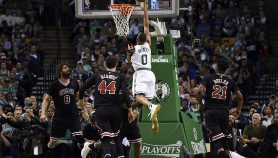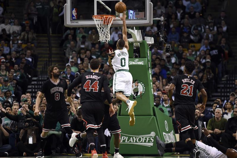 Utile à son équipe dans la création en l’absence de Rajon Rondo dans le premier quart temps, Dwyane Wade baisse d’un ton dans ce second acte. À la suite d’une perte de balle de ce dernier, Terry Rozier s’envole dans les airs du TD pour écraser un énorme dunk sur la tête du pauvre Felicio (27-23). En retombant dans ses travers du début de rencontre qui est de forcer la décision à 3 points au lieu de continuer à déstabiliser la défense des Bulls par le dribble ou par la passe, Boston voit Chicago revenir dans ce match (31-31).