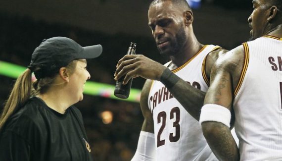 Le King répond aux deux paniers à 3 points de Powell par un passage d’anthologie : un premier tir à mi-distance en isolation, un passage en force provoqué sur Powell, un drive au forceps en transition, un second tir à 4 mètres sur attaque placée, et un bon gros dunk ligne de fond pour finir le boulot (106-84). Le franchise player des Cavs est au dessus du lot, et se permet même une scène surréaliste en faisant semblant de boire une gorgée d’une bière dérobée à une serveuse passant près du parquet. Avec 35 points au compteur, le bolide LeBron peut rentrer aux stands, et laisser Irving et Dahntay Jones faire le spectacle et finir le travail.