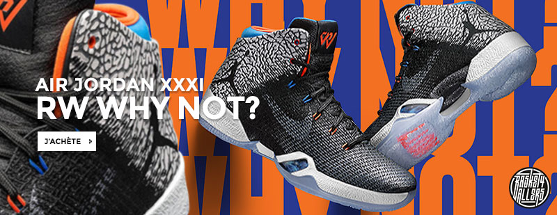 Commandez chez B4B la Air Jordan XXXI Why Not qui comme la chaussure du probable MVP combine la tige d’une AJ XXXI et la semelle d’une AJ XXX.