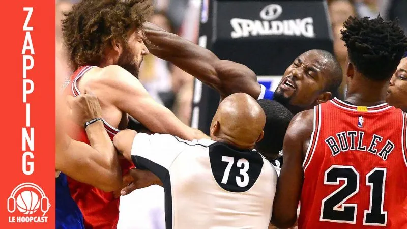 On est loin des années 1980 mais la NBA a tout de même connu certaines situations chaudes sur ses parquets cette saison. Kelly Oubre Jr. est le dernier à avoir perdu ses nerfs, Stephen Curry ou Jared Dudley ont eux aussi eu envie d'en découdre cette année. On retiendra le “pistolet” de Brandon Jennings pointé sur le premier, le gros déblayage de Greg Monroe, ou ce véritable bar fight entre Robin Lopez et Serge Ibaka.