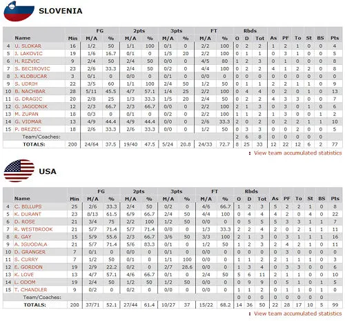 La suite, c’est de la gestion avec un écart qui va osciller entre 5 et 22 points. On ne va pas dire qu’on s’est ennuyés mais les Américains n’ont jamais été inquiétés, et forcément l’enjeu était moindre. Même lorsque la Slovénie a recollé à -5 (28-23) ou -12 (42-30), on n’a jamais senti qu’elle était capable de renverser le cours du match. Surtout que les stars slovènes, Goran Dragic (2/8 aux tirs, 3 bps) en tête, n’étaient pas dans un grand soir.