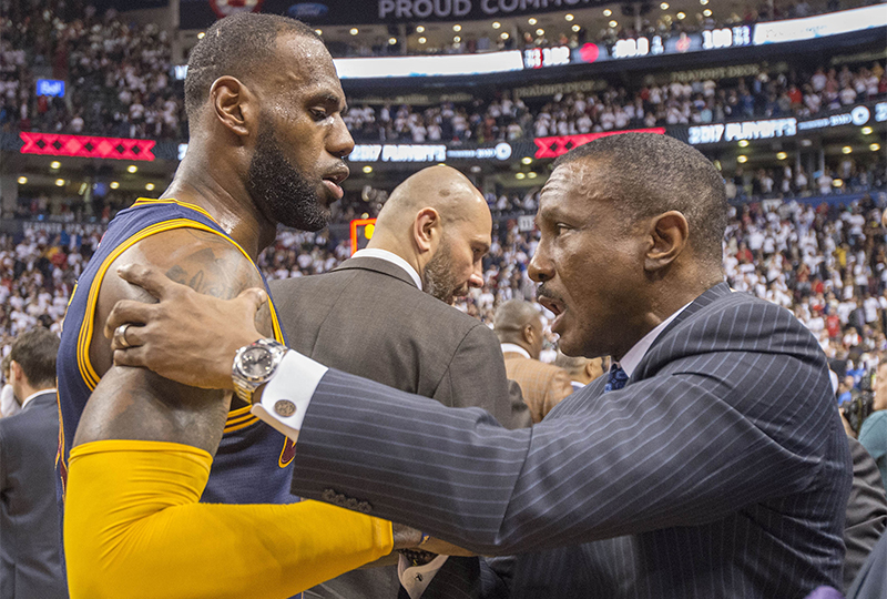 Pour ce match 4, Dwane Casey est fidèle à ses habitudes depuis le début de la série : il continue de bricoler avec son cinq majeur pour trouver la meilleure formule, en vue de gagner au moins un match. Cette fois, c’est P.J. Tucker qui hérite du poste 3 en remplacement de Norman Powell, un choix résolument défensif donc pour tenter d’enrayer le bulldozer James. À la mène, on retrouve Cory Joseph pour combler l’absence de Kyle Lowry.