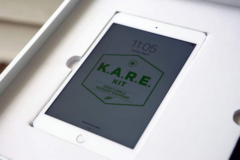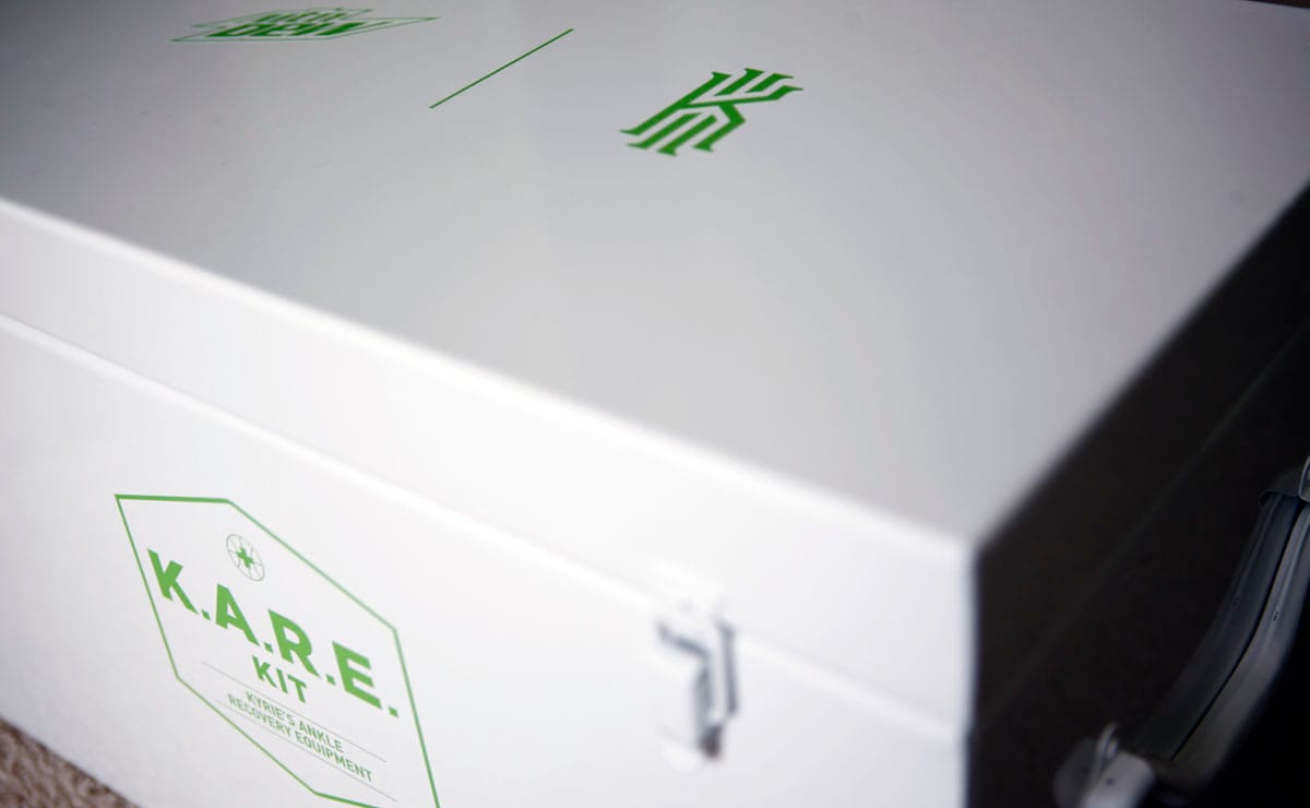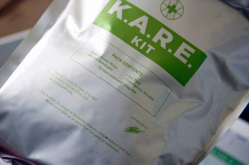 Cette fois, c’est au tour d’une autre boisson gazeuse : le Mountain Dew, avec un pack collector édité à seulement 32 exemplaires. Baptisé K.A.R.E. (Kyrie’s Ankle Recovery Equipment), il réunit tout ce qu’il faut pour se remettre d’une rencontre trop violente avec le crossover d’Irving.