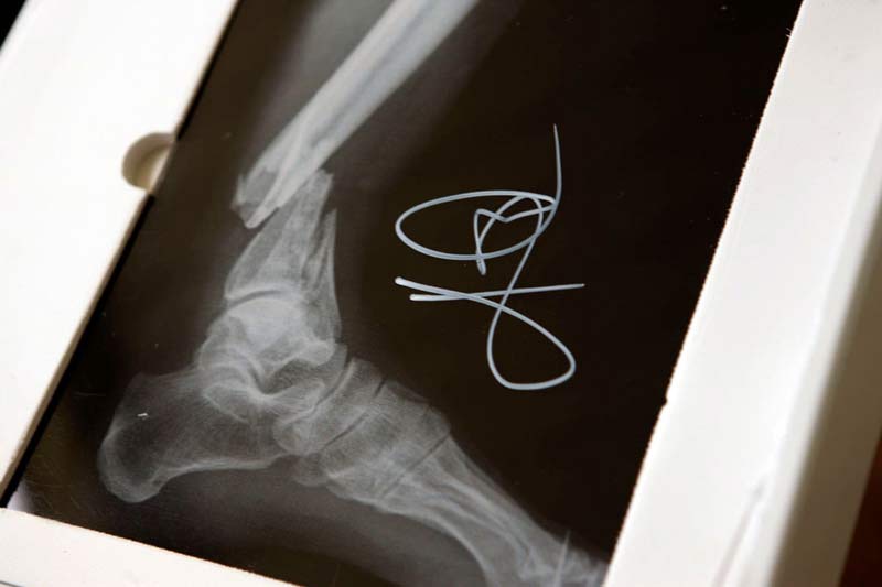 Canettes de soda, iPad pour les résultats des radiographies, glace, bandages, et même un téléphone.