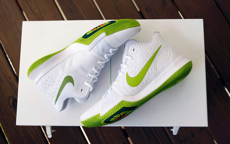 L’essentiel, c’est un superbe coloris blanc et vert de la Kyrie 3, qui restera donc malheureusement réservé à une poignée de chanceux, notamment via un concours organisé par Sole Collector.