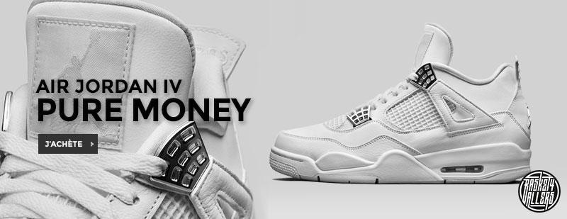 Commandez chez B4B la Air Jordan IV Retro Pure Money dont le nom provient de la broderie “Pure $” que l’on trouve en retournant le heeltab.