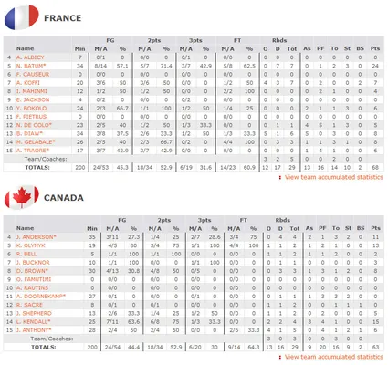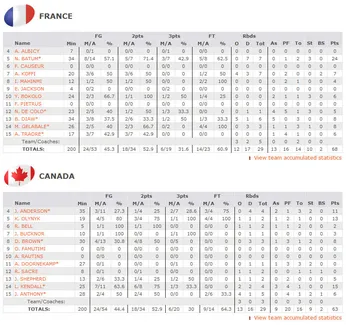 Mais avant d'envisager les 8èmes, un coup d'oeil sur le résumé du match face au Canada et à la feuille de stats. Côté Bleu, Nicolas Batum (24 pts, 7 rbds) et Boris Diaw (8 pts, 6 rbds et 5 pds) ont vraiment assuré.
