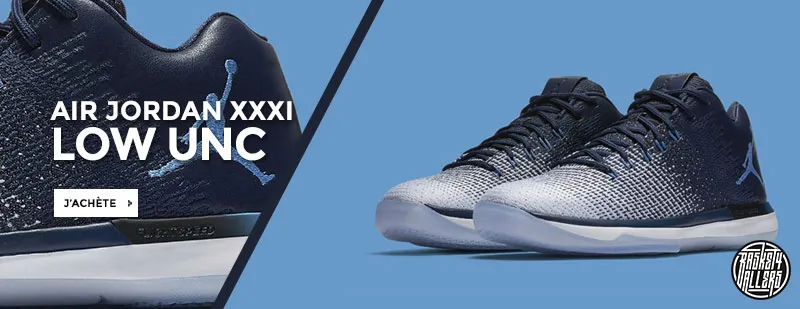 Commandez chez B4B la Air Jordan XXXI Low UNC venant conclure les festivités autour de la glorieuse saison des Tar Heels.