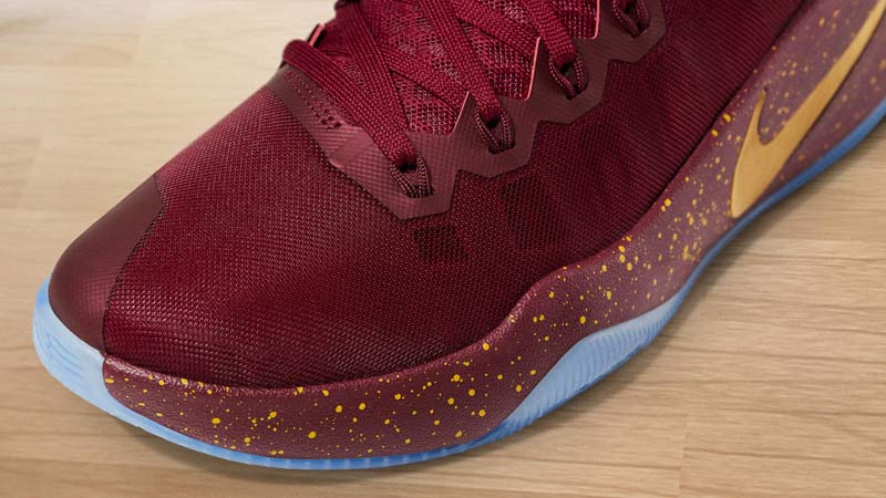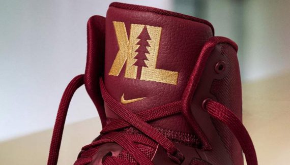 Ce “KL” est posé sur la languette d’une Hyperdunk 2016. Évidemment, pour fêter les Finals, les traditionnelles touches dorées sont de rigueur pour compléter les couleurs des Cavaliers.