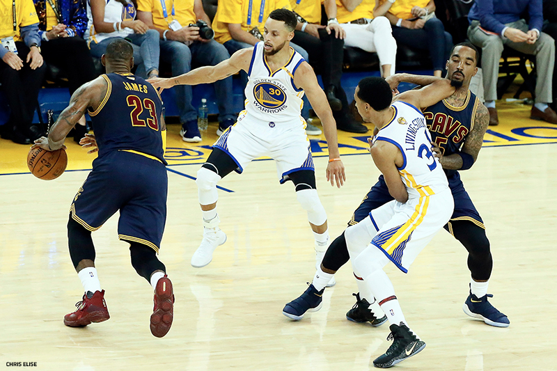 Si la défense de Golden State faisait déjà partie des meilleures de la ligue la saison dernière, les Cavs avaient trouvé en Stephen Curry un maillon faible qu’il pouvait exploiter l’an passé. Leur stratégie était simple : le joueur défendu par le double MVP devait poser un écran pour LeBron James, forçant le meneur à le défendre en un contre un.