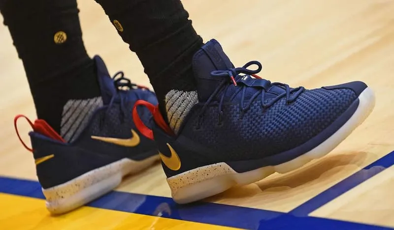 Au cours de l'entraînement de samedi, l'ailier des Cavaliers est entré sur le parquet avec une chaussure basse, qui semble reprendre l'amorti de la LeBron 14 classique.
