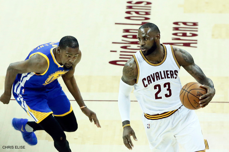 Voyant l’aide de Durant arriver en second rideau et surtout l’écran de Kevin Love sur Stephen Curry pour Kyle Korver, LeBron James décide de lâcher la grappe pour son shooteur, dans le corner. Une fixation passe d’école pour un bon tir ouvert… mais qui ne rentre pas. Un véritable tournant à six points car dans la foulée, KD punit les Cavs en première intention.