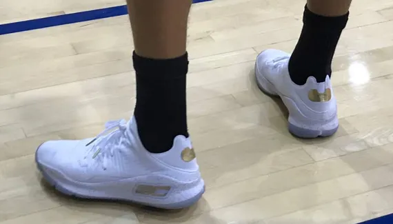 Mais lors de l’entraînement de dimanche, le meneur des Warriors a donné un premier aperçu de la tige basse de son nouveau modèle signature.