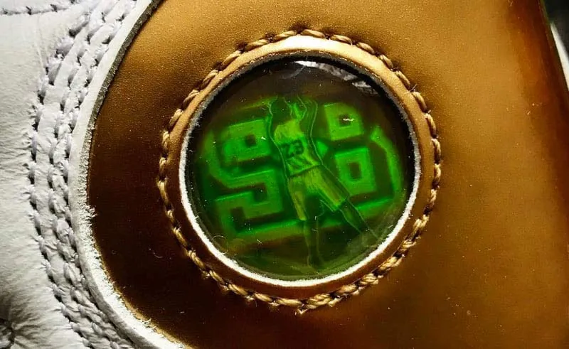 Pour convaincre les indécis, la marque a retouché un tout petit détail sur une des chaussures. Un détail qui passe quasiment inaperçu sur les photos. Il faut aller sur le talon de la Air Jordan 13, du côté de l'hologramme, pour le trouver.