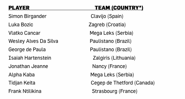 En comptant les retraits de ces joueurs étrangers et les jeunes dans les cursus américains, il y a encore 63 universitaires et 10 internationaux encore en lice. Côté Français, on compte bien sûr Frank Ntilikina (Strasbourg) et Alpha Kaba (Mega Leks). Quant à Jonathan Jeanne (Nancy), il a malheureusement appris qu’il souffrait d’une grave maladie génétique.