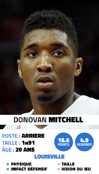 Il est petit (1m91) pour le poste, à l’heure où la NBA recherche des joueurs capables de défendre plusieurs positions. Mais Donovan Mitchell a vu sa cote grimper ces dernières semaines, l’arrière affichant une envergure impressionnante lors du Draft Combine. L’ancien de Louisville a aussi fait très grosse impression lors des interviews avec les franchises, et il pourrait être le profil parfait pour Stan Van Gundy.