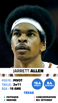 Néanmoins, sa cote a pris un coup ces derniers temps à cause de sa blessure du genou, qui a mis fin à sa saison en janvier dernier. Du coup, Jarrett Allen pourrait être une bonne option pour Pat Riley, l’intérieur disposant des atouts physiques pour devenir un bon joueur défensif, capable de suppléer Hassan Whiteside sous le cercle. Il devra par contre se montrer plus concentré, tandis que son potentiel offensif reste limité.