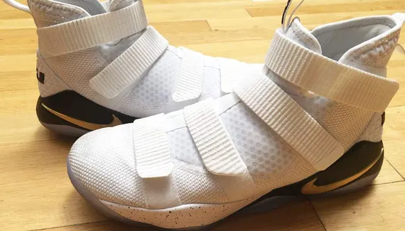 La Soldier 11 s’inscrit dans la lignée de la Soldier X, avec une sangle velcro en plus. Une chaussure assez différente de la LeBron 14, que le King avait portée depuis le début de saison.