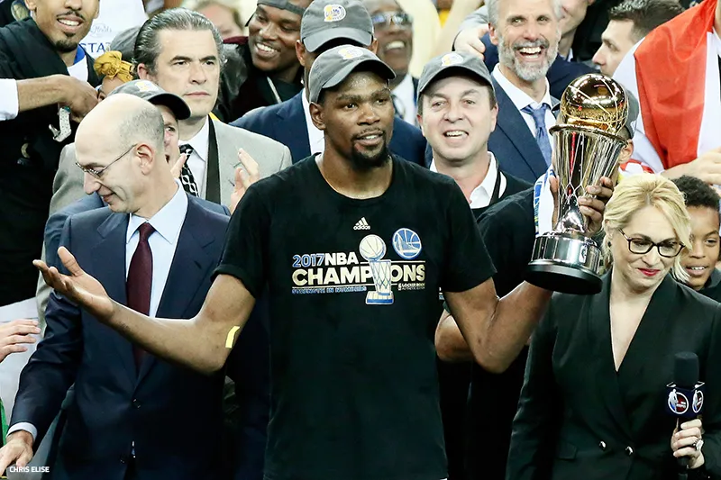 Comme l’an passé, Kevin Durant sera free agent, mais cette fois-ci, il n’animera pas le marché des transferts. Selon ESPN, et ce n’est pas une surprise, l’ailier des Warriors va faire jouer sa clause libératoire avec pour objectif de signer un nouveau contrat avec Golden State, mais aussi de faciliter les prolongations de contrat de plusieurs coéquipiers free agents.
