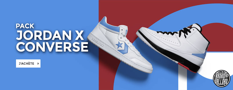 Commandez chez B4B le pack Jordan X Converse hommage au début de MJ comprenant la Converse qu’il portait durant ses années à North Carolina, et la Jordan 2 avec laquelle il est revenu quelques années plus tard disputer un match entre anciens élèves.