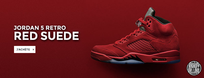 Commandez chez B4B la Air Jordan 5 Red Suede dont l’empeigne en suede premium rouge n’est pas sans rappeler le coloris Toro Bravo sorti en 2009.