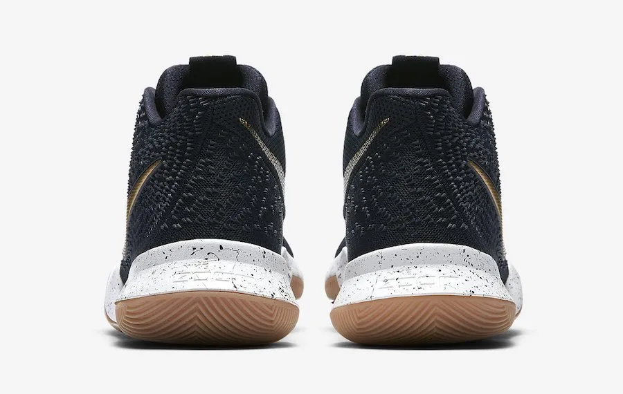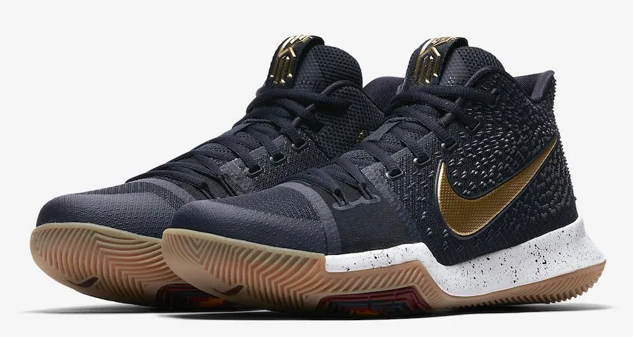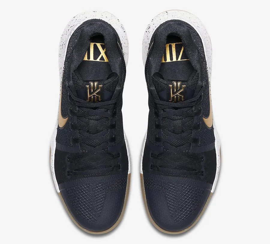 Si vous avez aimé la Kyrie 3 “Obsidian”, dévoilée juste avant les Finals, vous apprécierez sans doute la version “Metallic/Gold”. Elle reprend le design de l'Obsidian sauf que la tige n'est plus bleue nuit, mais noire. La semelle est identique, et sa sortie est programmée pour le 21 juillet prochain.