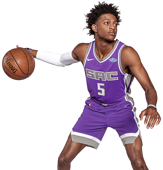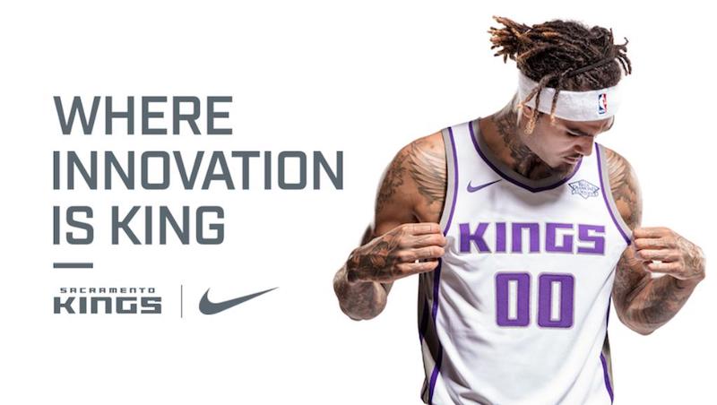 Quelques heures après Nike, c’est au tour des Kings de dévoiler leurs deux premières tenues pour la saison 2017/18. L’édition Association est donc blanche, tandis que la version Icon opte pour le violet comme couleur principale. On note au passage que la couronne a disparu du maillot, mais qu’on la retrouve sur le short.
