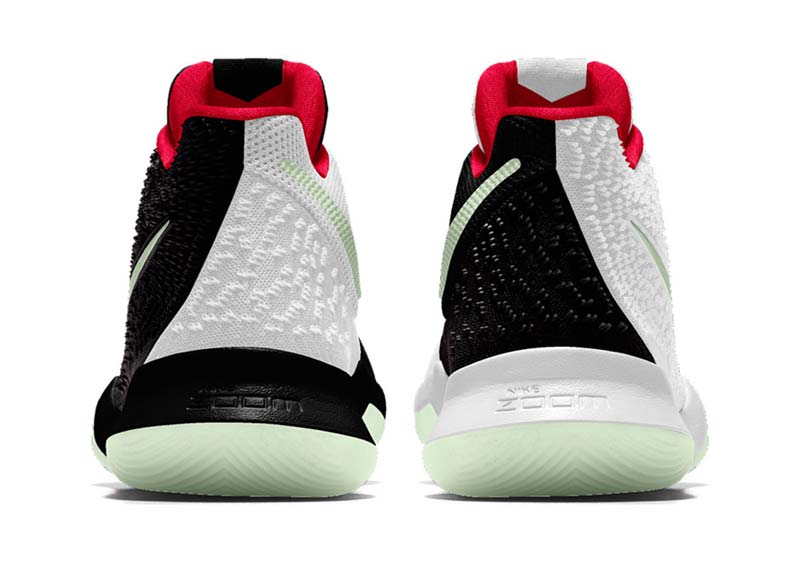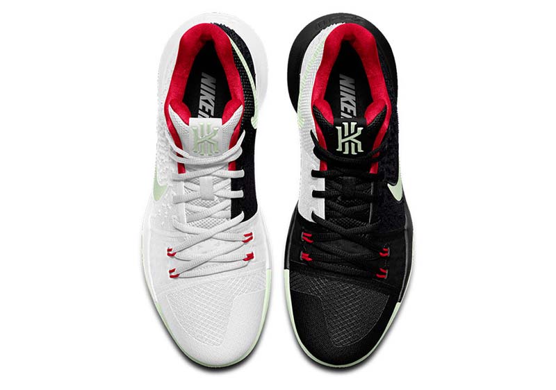 Kyrie Irving a été le premier à mettre en ligne les images de ce coloris dépareillé. Et même s’il est baptisé “Asia Tour”, l’association noir/blanc/rouge/glow in the dark fait clairement penser aux Yeezy de 2009 et 2012. Officiellement, il s’agit aussi d’évoquer le yin et le yang.