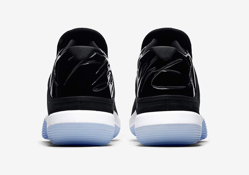 Le coloris reprend les principales caractéristiques de la Air Jordan 11 “Space Jam”, que le numéro 23 portait dans le film. L’empiècement en cuir verni est placé sur le talon, et une semelle translucide met le tout en valeur.