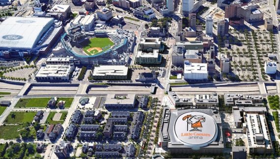 La nouvelle salle, qui accueillera également les Red Wings en NHL, contient 20 000 places (et même 21 000 en configuration basket) et fait partie du projet soutenu par le propriétaire des Pistons, Tom Gores, et la ville de Detroit pour redynamiser un centre ville déserté et sinistré.
