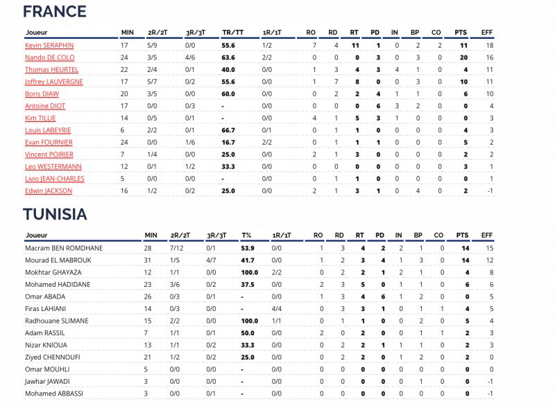 Au Palais des Sports de Pau, moins bruyant et rempli qu’à l’accoutumée, la France a bien marqué le coup pour débuter sa préparation avec une victoire, 67-53, face à la Tunisie. Évidemment, le manque de rythme et de travail se sont sentis mais les Bleus ont montré de belles choses, à commencer par de l’envie, que ce soit de courir ou de chercher les meilleures passes. À ce titre, Nando De Colo (20 pts, 3 pds), Kevin Séraphin (11 pts, 11 rbds) ou encore Joffrey Lauvergne (10 pts, 8 rbds) et Antoine Diot (6 pds, 3 ints) ont rassuré, tout comme Boris Diaw, relativement impeccable dans son registre. En face, Mourad El Mabrouk (14 pts, 3 pds, 4 rbds) et Makrem Ben Romdhane (14 pts, 4 rbds) ont fait mal à la sélection française.