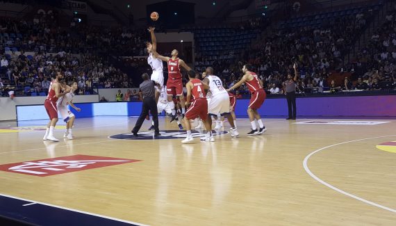 Comme souvent en début de préparation, et comme souvent avec les Bleus, l’entrée de match est poussive. L’énergie est là, à l’image du premier dunk de Joffrey Lauvergne ou de la contre-attaque lancée par Boris Diaw, mais c’est l’exécution qui pèche, notamment celle de Nando De Colo, imprécis dans ses passes. Après quelques minutes d’observation, ce sont donc les Tunisiens qui prennent l’ascendant, lancés par Mourad El Mabrouk et son adresse à trois-points. Défensivement, les hommes de Vincent Collet manquent de réactivité sur les départs en dribble adverses et il n’en faut pas plus pour donner de la confiance aux joueurs tunisiens. Heureusement, l’entrée de Kevin Séraphin fait du bien : l’intérieur est incisif, en forme et le montre. À la conclusion de ce premier quart-temps, la Tunisie est en tête, 20-16.