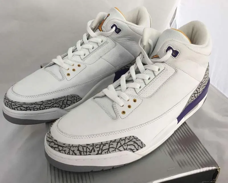 Pour rappel, en 2002-03, Bryant était un free agent de chaussures. Il en avait profité pour enfiler une multitude de chaussures mythiques, souvent dans les couleurs des Lakers. Nike, Reebok, Jordan… Toutes les marques étaient passées à ses pieds. Et certains modèles, comme cette Jordan 3, ont marqué les esprits.