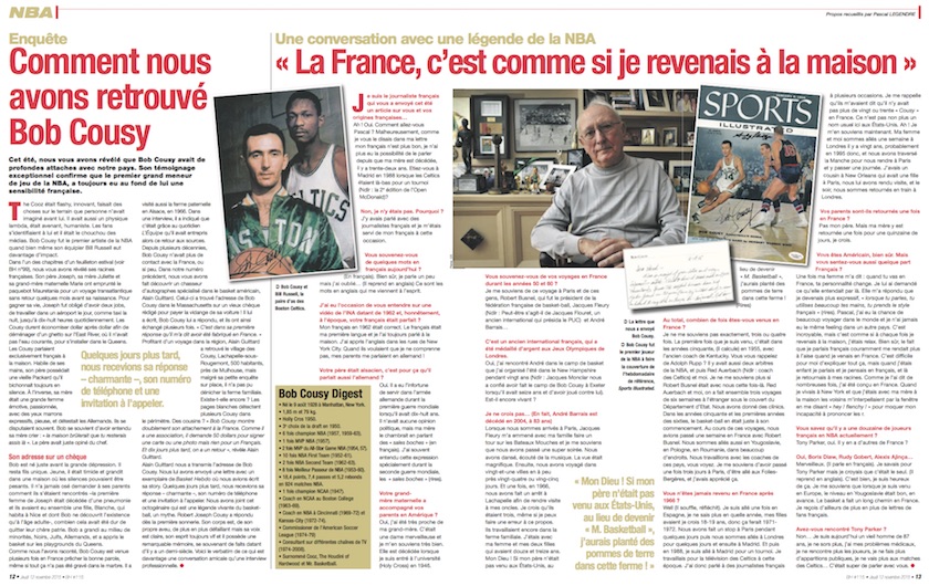 Ces souvenirs français de Bob Cousy, racontés par Basket Hebdo dans deux numéros de 2015, et son histoire plus généralement, sont précieux puisqu’ils illustrent une époque révolue où l’information et la médiatisation des meilleurs joueurs de basket du monde n’étaient pas aussi outrancières et faciles que dans les années 2010.
