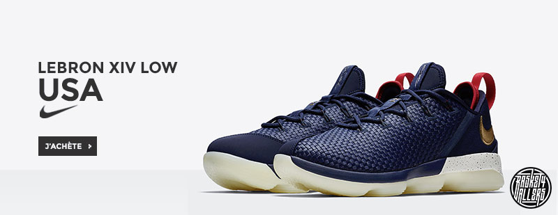 Commandez chez B4B la Nike Lebron XIV Low USA dont les couleurs ne sont pas aussi sans rapeler celles du maillot alternate du King.
