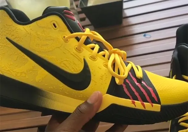 Kyrie Irving semble mal parti pour imiter Kobe Bryant en restant fidèle à une même franchise tout au long de sa carrière. En revanche, le meneur des Cavs a trouvé de l'inspiration chez le Black Mamba au niveau des chaussures. Sur une vidéo postée sur Instagram, il a révélé ses nouvelles Kyrie 3 “Bruce Lee”, inspirées des Kobe V ” Bruce Lee “. L'explication est simple : la paire de Bryant est tout simplement la préférée d'Irving.