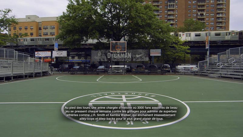 Vous évoluez à travers ce mode au fil des messages SMS et des vidéos tournées pour l’occasion par Stephen A. Smith et Max Kellerman (First Take), le premier prouvant qu’il peut aussi parler pour ne rien dire dans le monde virtuel. L’impossibilité de passer ces vidéos est d’ailleurs un peu agaçante. Dans la démo, vous devez participer à une série de matchs sur des playgrounds, avant le Combine, et la Draft. Pour la suite, il faudra acheter le jeu.