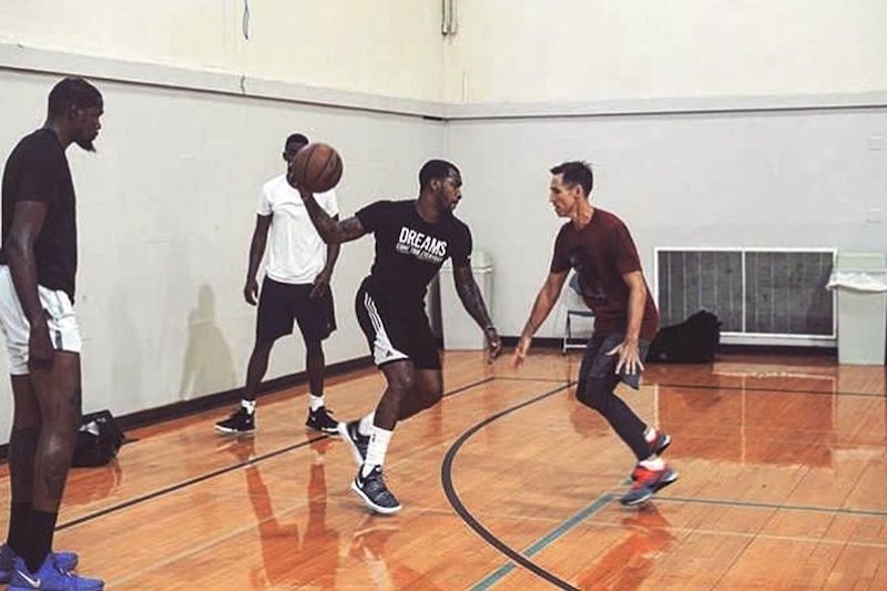 Cette rencontre, a priori plutôt improbable, a été permise grâce à Adam Harrington. Avant de rejoindre le staff de Kenny Atkinson aux Nets, il était le coach de Durant niveau tirs à Oklahoma City. Il a suffi d’un coup de fil entre les deux hommes pour que cet entraînement commun ait lieu.