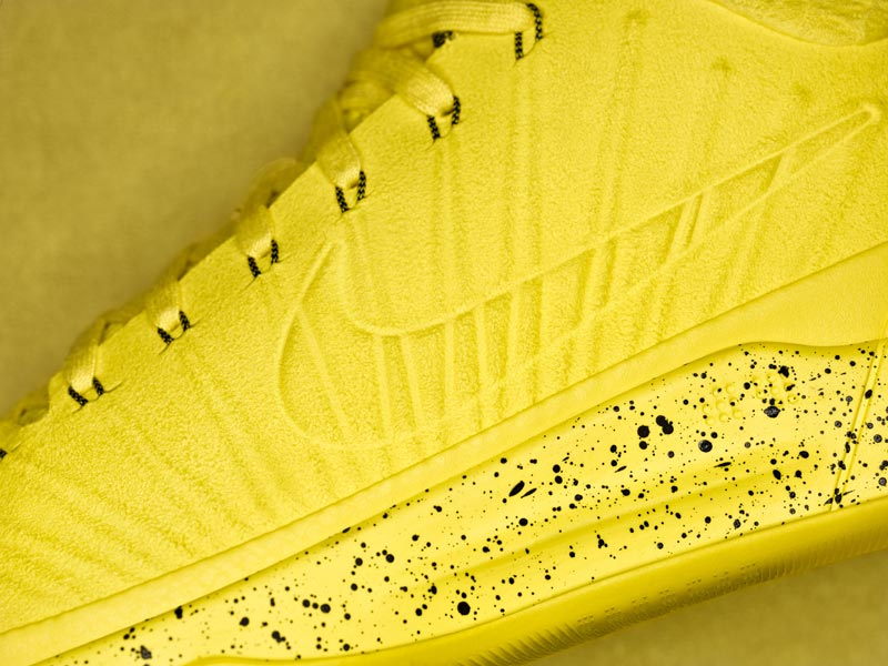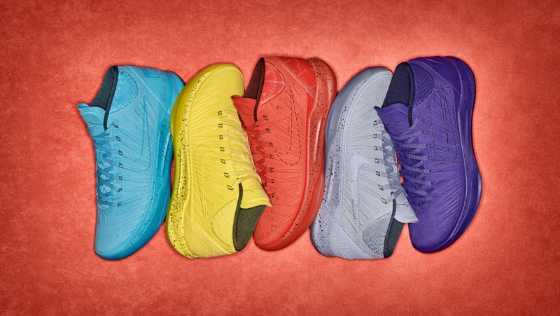 La présentation de cette chaussure tourne entièrement autour de la “Mamba Mentality” et de la “psychologie des couleurs.” Car les cinq teintes monochromes présentées correspondent toutes, en théorie, à un état d’esprit : violet (intrépide), bleu (honnêteté), rouge (passion), gris (détachement) et jaune (optimisme). Des petits détails diffèrent sur chaque coloris pour accentuer le lien avec ces thèmes.