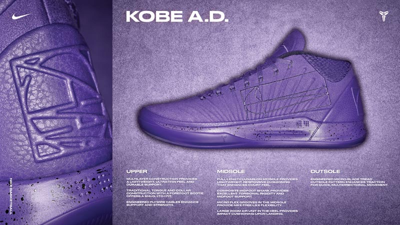 Sur le plan technique, on retrouve une poche Zoom Air au talon, de la mousse Lunarlon et des câbles de Flywire pour les lacets. Rien de bien nouveau, donc. Car depuis la retraite du Black Mamba, c’est surtout sur le côté marketing que la marque à la virgule s’appuie pour faire la promotion de ses modèles.