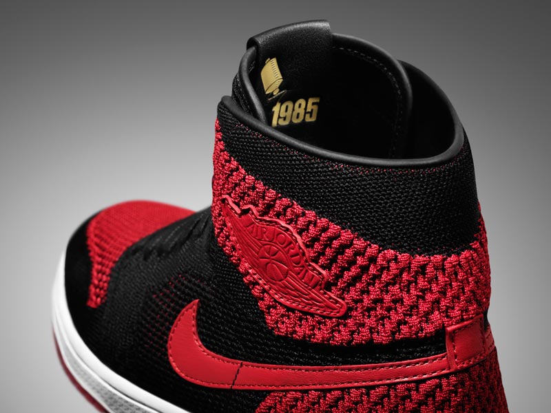 À l’intérieur de la languette, on retrouve des références à la date de sortie originale de la Air Jordan 1.