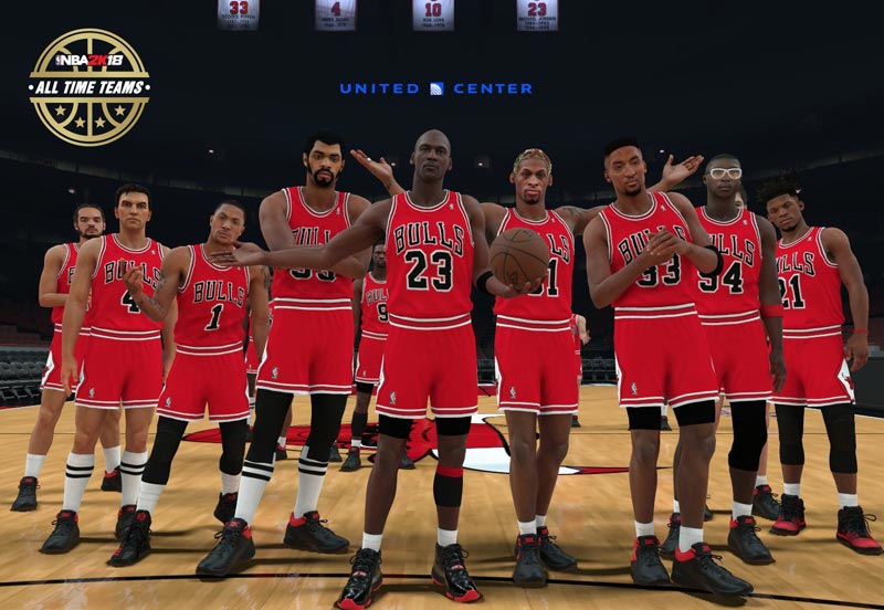Du côté des All-Time Teams, après les Lakers, ce sont les Bulls qui se dévoilent. Le trio majeur Michael Jordan – Scottie Pippen – Dennis Rodman est évidemment de la partie. Mais les joueurs plus récents ne sont pas oubliés, puisque Derrick Rose, Jimmy Butler et Joakim Noah apparaissent sur la photo de famille.